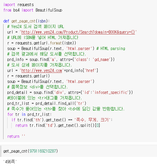 - 선택 미션 : p.137~138 손코딩 실습으로 원하는 도서의 페이지수를 추출하고 화면 캡처하기